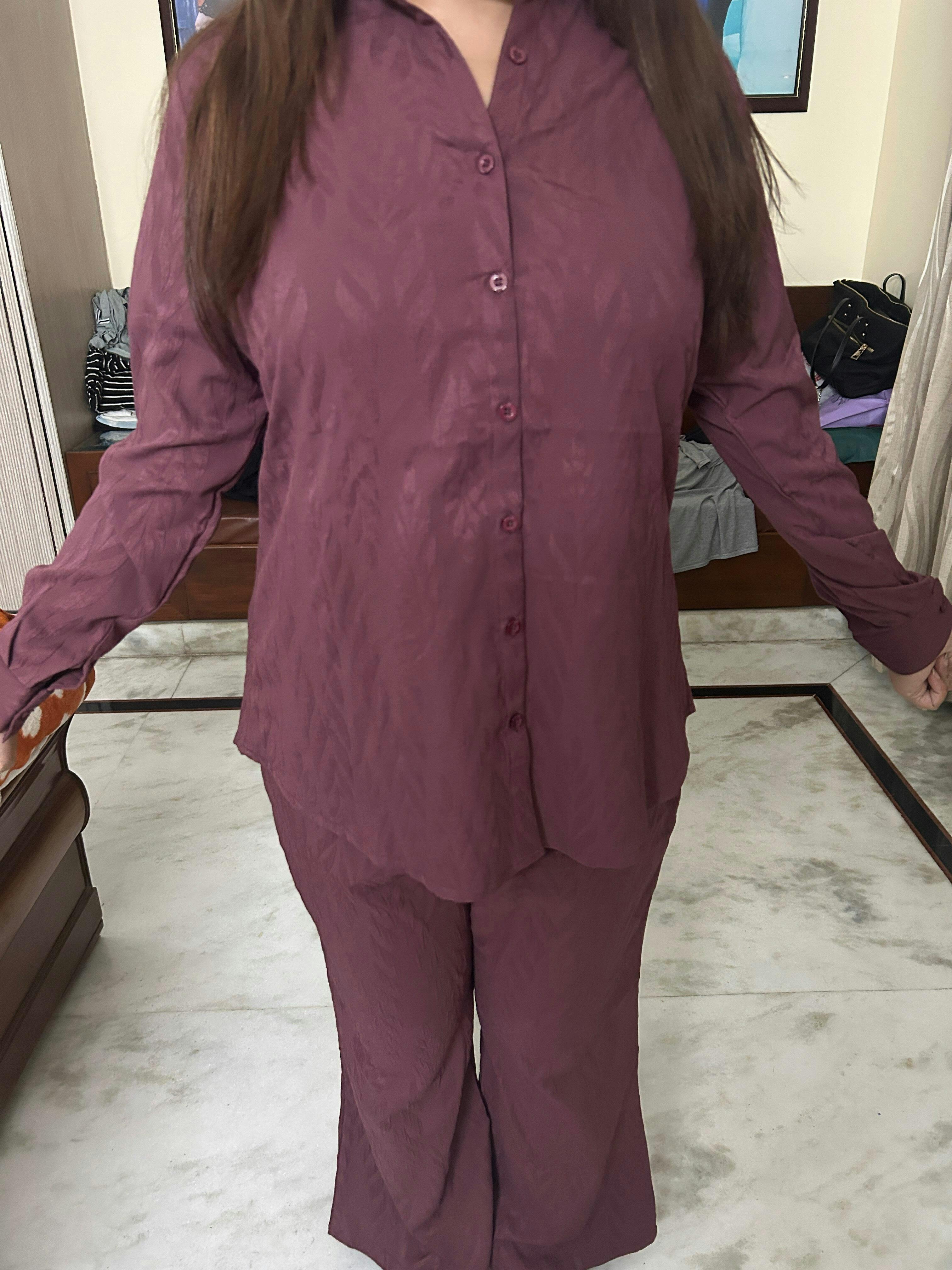 Step into sophisticated elegance with this Purple Self-Design Co-Ord Set, designed for women who appreciate effortless style with a luxurious touch. Crafted from soft, breathable fabric, this chic tunic with intricate self-design patterns pairs beautifully with matching wide-leg trousers, offering a polished yet relaxed look. Whether dressing up for work, casual outings, or evening events, this set ensures all-day comfort and timeless charm.